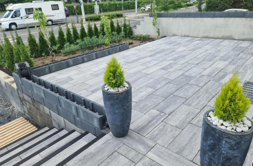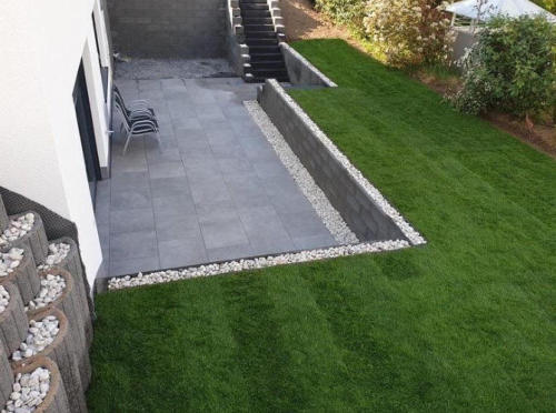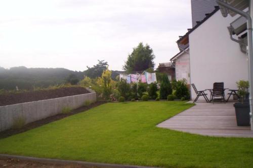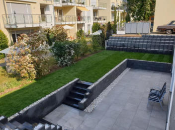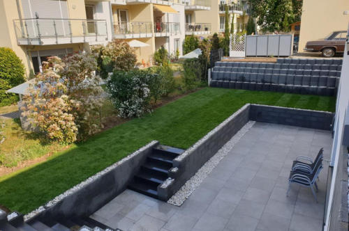 umfassen Rollrasenverlegung, Baumfällungen, Bau von Treppen, Terrassen – und Teichanlagen bis hin zu Außenanlagen aus